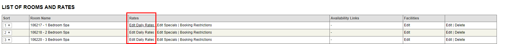 - Click on edit daily rates