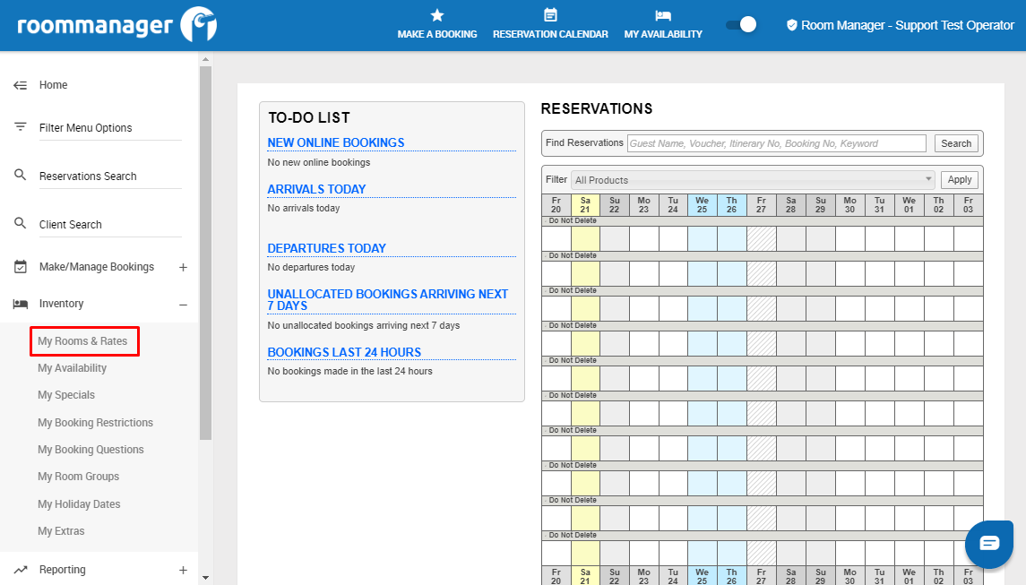 2 - On the left-hand menu, under Inventory, click on Rooms and Rates