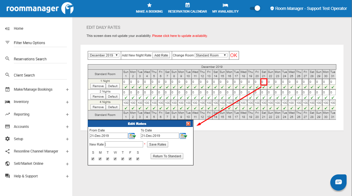 4 - Click the rate on the date you wish to edit the rate and a popup box will appear